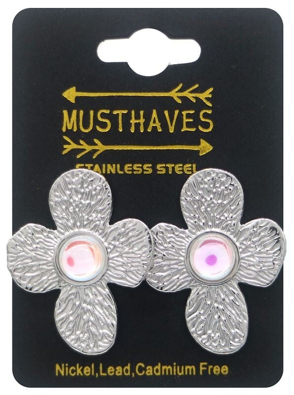 Oorbellen bloem silver met steen 0021