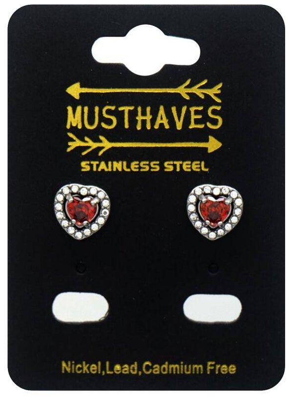Oorbellen hart silver/red 0030
